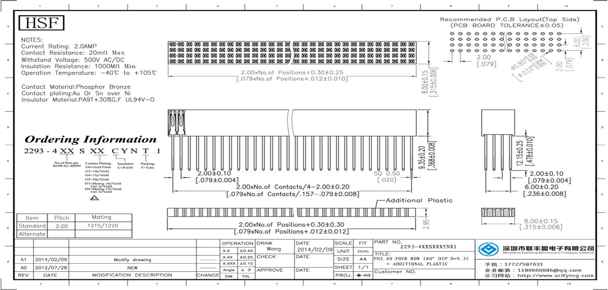 產品分類:PC 104連接器 產品型號:2.0 排母 4*30P 180 PA9T黑色 H=9.35 連接器聯豐盈 技術參數:額定電流:2.0amp電流電阻:20m最大絕緣電阻:1000m承受電壓:AC 500V /分鐘工作溫度:40﹣℃+ 1