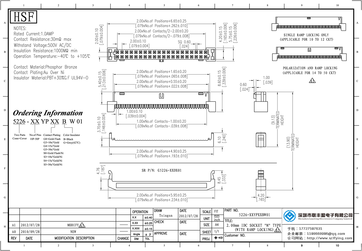 產品分類:IDC插座連接器 產品型號:2.00 MOLEX 彈片型 IDC 聯豐盈供應 技術參數:額定電流:1.0amp電流電阻:20m最大絕緣電阻:1000mmin耐壓:1000V AC /分鐘工作溫度:40﹣℃+ 105℃接觸材料: