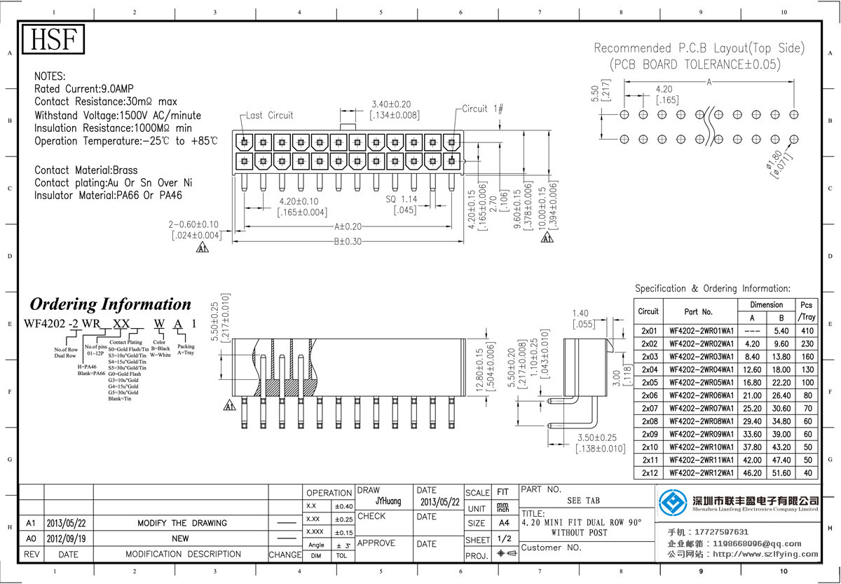 產品特點:  輸出電流接觸電阻:2omΩ最大耐壓:1500V交流/分鐘的絕緣電阻:1000mΩ最小工作溫度:25℃+ 85℃絕緣體材質:尼龍66 UL94V-O
