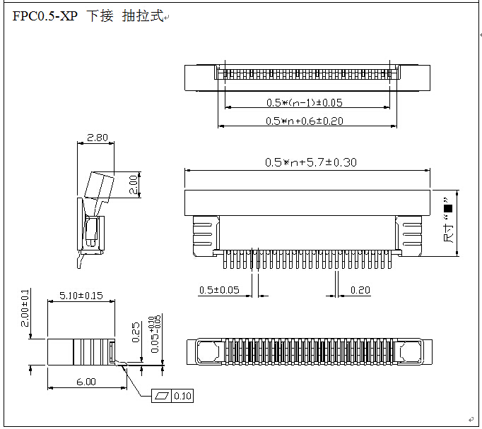 產品類型: FPC連接器 產品型號: FPC0.5-XP 間距 0.5mm 針數 4-60P 額定電流 0.4A 額定電壓 50V 接觸電阻 20 Milliohms Max 絕緣電阻 500 M Min 工作溫度范圍 -25oC+85oC 耐電壓 200V AC r.m.s 金屬材質 黃銅
