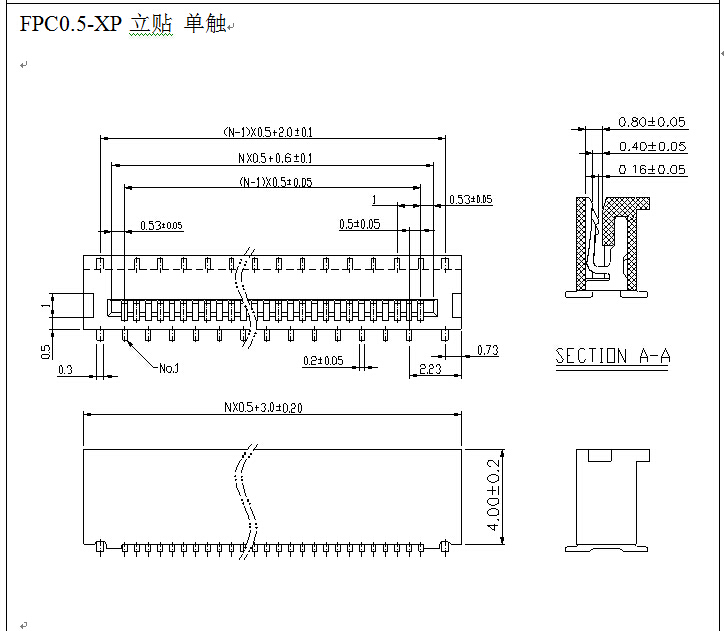 產品類型: FPC連接器 產品類型 FPC0.5-XP 間距 0.5mm 針數 4-60P 額定電流 0.4A 額定電壓 50V 接觸電阻 20 Milliohms Max 絕緣電阻 500 M Min 工作溫度范圍 -25oC+85oC 耐電壓 200V AC r.m.s 金屬材質 黃銅/磷