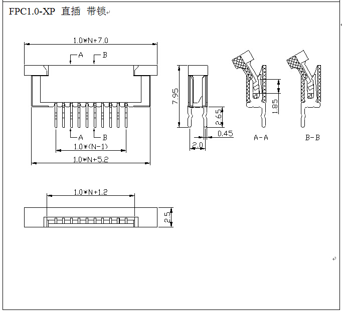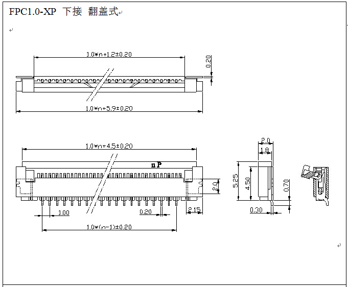 1.0FPC 下接翻蓋式 直插帶鎖 連接器