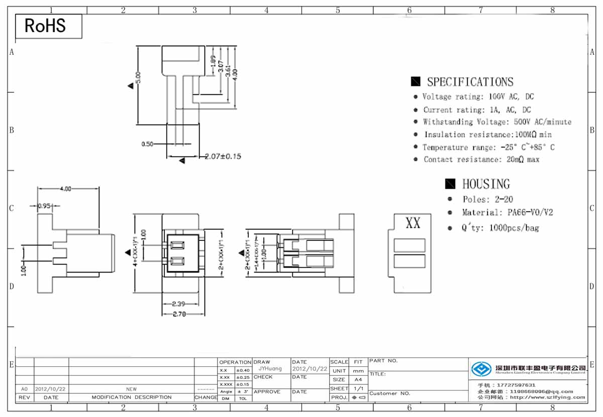 - 接觸電阻(Contact resistance):20MΩ Max.