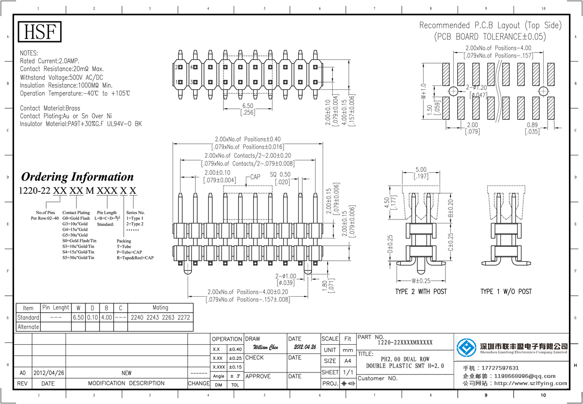 產品分類:排針連接器 產品規格:2.0MM 雙層雙排 加夾持蓋 排針 聯豐盈 產品介紹:額定電流:2.0amp電流電阻:20m最大絕緣電阻:1000m民承受電壓:AC 500V /分鐘工作溫度:40﹣℃+ 105℃接