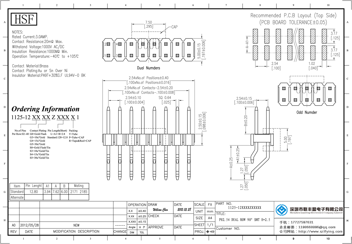 產(chǎn)品介紹:額定電流:3.0amp電流電阻:20mΩ最大絕緣電阻:1000mΩ民承受電壓:AC 500V /分鐘工作溫度:40﹣℃+ 105℃接觸材料:黃銅觸點(diǎn)電鍍金或錫鎳絕緣體材質(zhì):聚酯(UL94V-0)標(biāo)準(zhǔn):PA9T或PBT黑色+ 30% GF