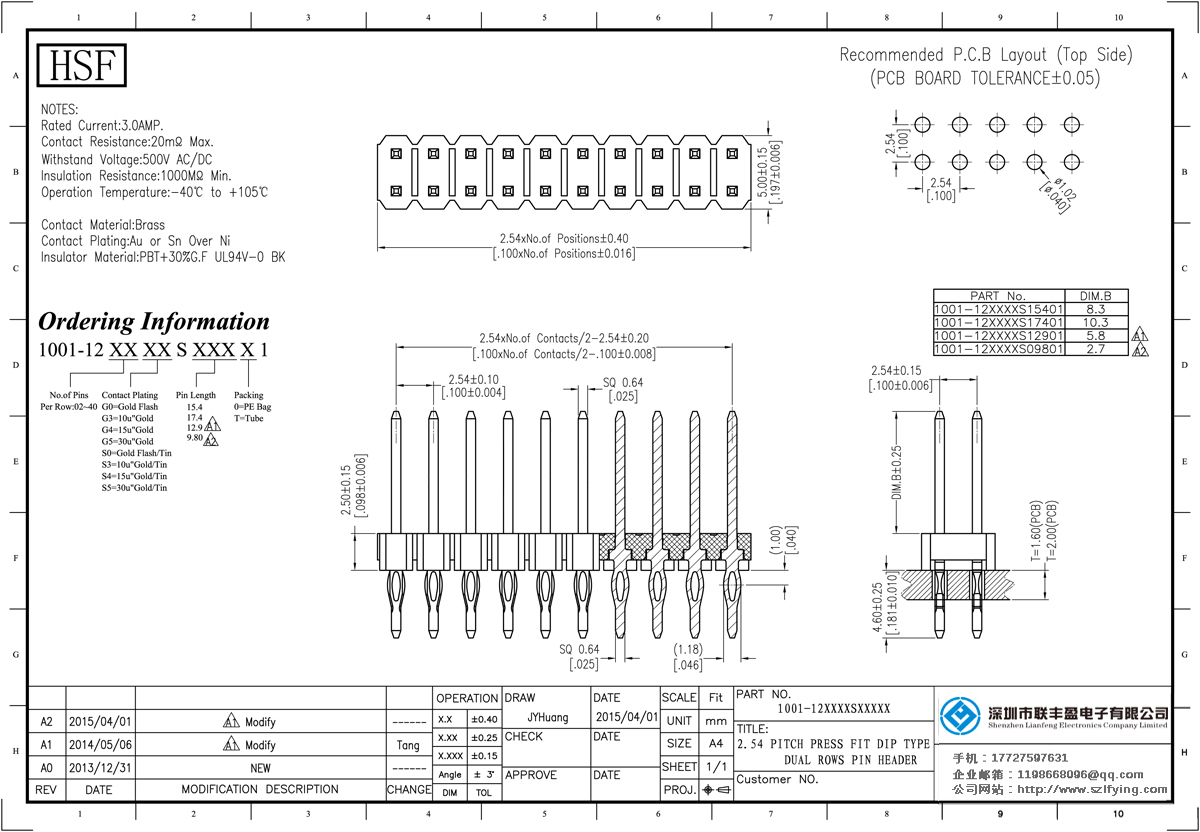 產品介紹:額定電流:3.oamp。接觸電阻:2omΩ最大承受電壓:500V的交流/直流絕緣電阻:1000mΩ最低操作溫度:40℃+ 105℃接觸材料:黃銅接觸繪圖:金、錫鎳絕緣體材質:PBT的+ 30% g.f UL94V-0 BK