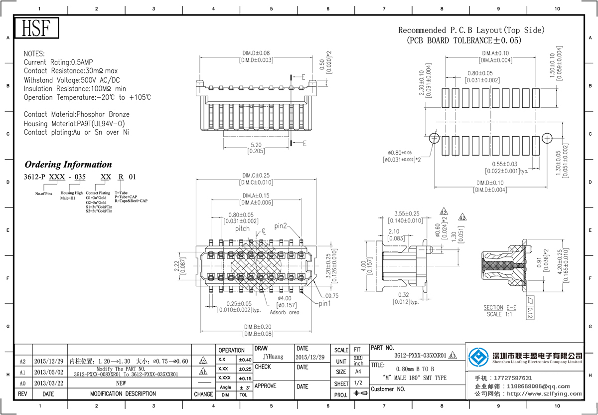 產(chǎn)品分類(lèi):Board To Board 連接器 產(chǎn)品型號(hào):0.8MM 公座 單槽結(jié)構(gòu) Board To Board聯(lián)豐盈 技術(shù)參數(shù):額定電流:0.5amp電流電阻:20m最大絕緣電阻:100m承受電壓:AC 500V /分鐘工作溫度:20﹣℃+ 1
