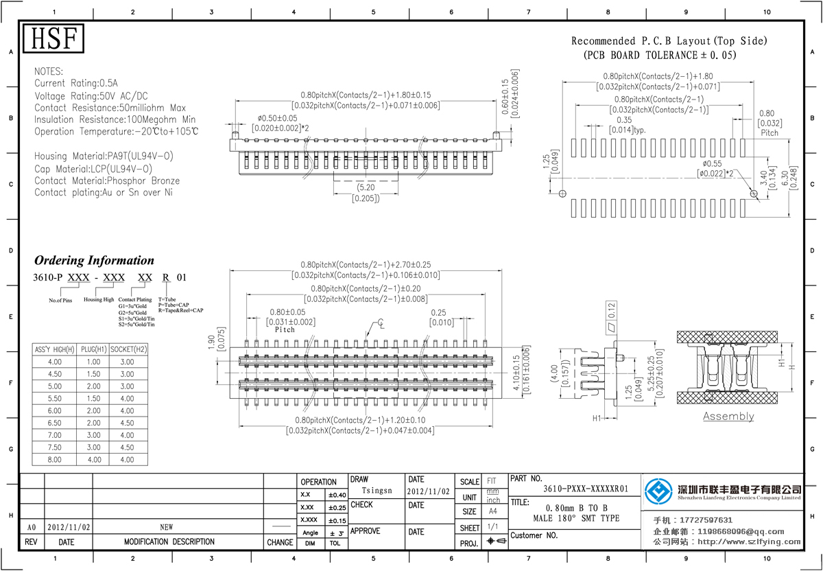技術參數:額定電流:0.5amp電流電阻:65mΩ最大絕緣電阻:1000mΩ承受電壓:交流250V /分鐘工作溫度:40﹣℃+ 105℃接觸材料:磷青銅觸點電鍍金或錫鎳絕緣體材質:聚酯(UL94V-0)標準:LCP + 30% GF