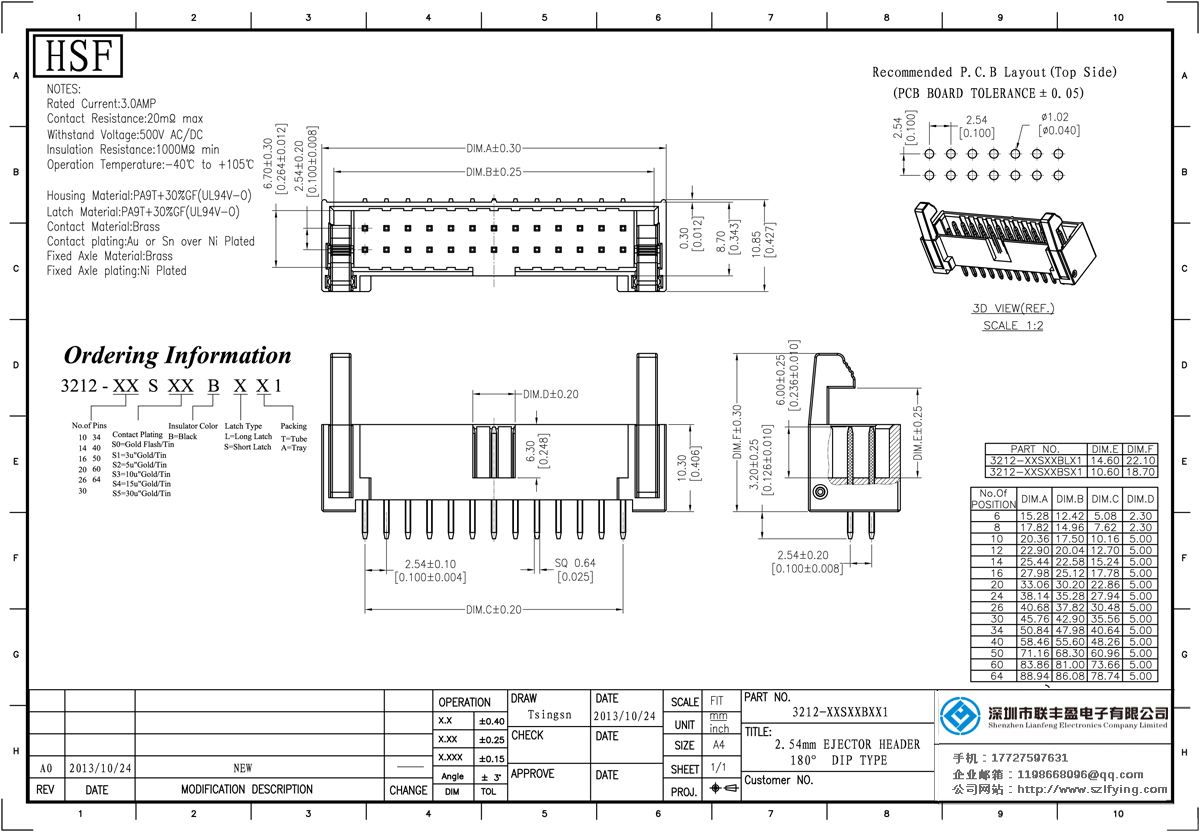 技術(shù)參數(shù):額定電流:3amp接觸電阻:2omΩ最大承受電壓:500V的交流/直流絕緣電阻:1000mΩ毫米的操作溫度:- 55℃+ 105℃接觸platinq:金、錫鎳絕緣體材質(zhì):PBT的+ 30%(UL94V-O)